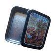 Bedruckte Metalldose mit Klickdeckel.