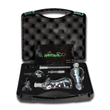 Dazu stehen dir zwei verschiedene Glasköpfe im 14er NS, ein Zigarettenspitzaufsatz sowie ein Diffusoradapter und ein Handgriffstück zu der Verfügung. Zusammengehalten wird das mit einer Laborklammer für den Schliff.